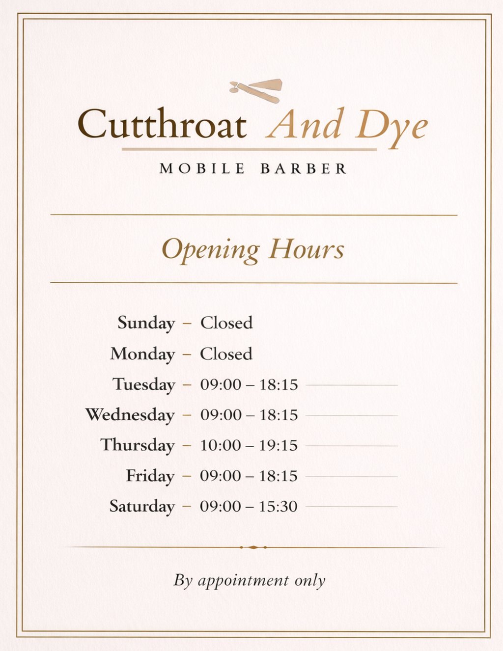 Cutthroat and Dye provides a refined mobile barbering experience across Didcot and Oxfordshire, combining professional craftsmanship with the convenience of at-home service.